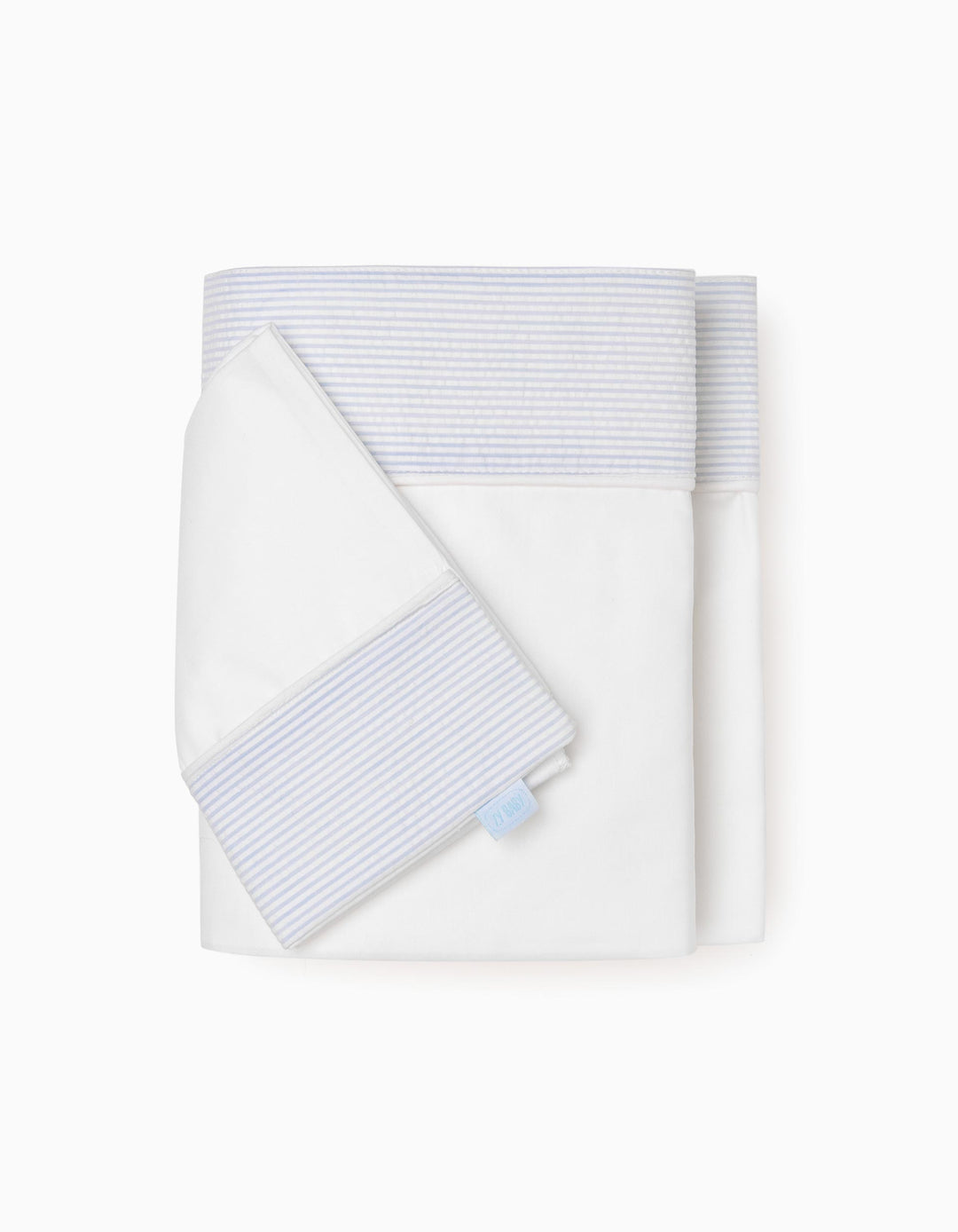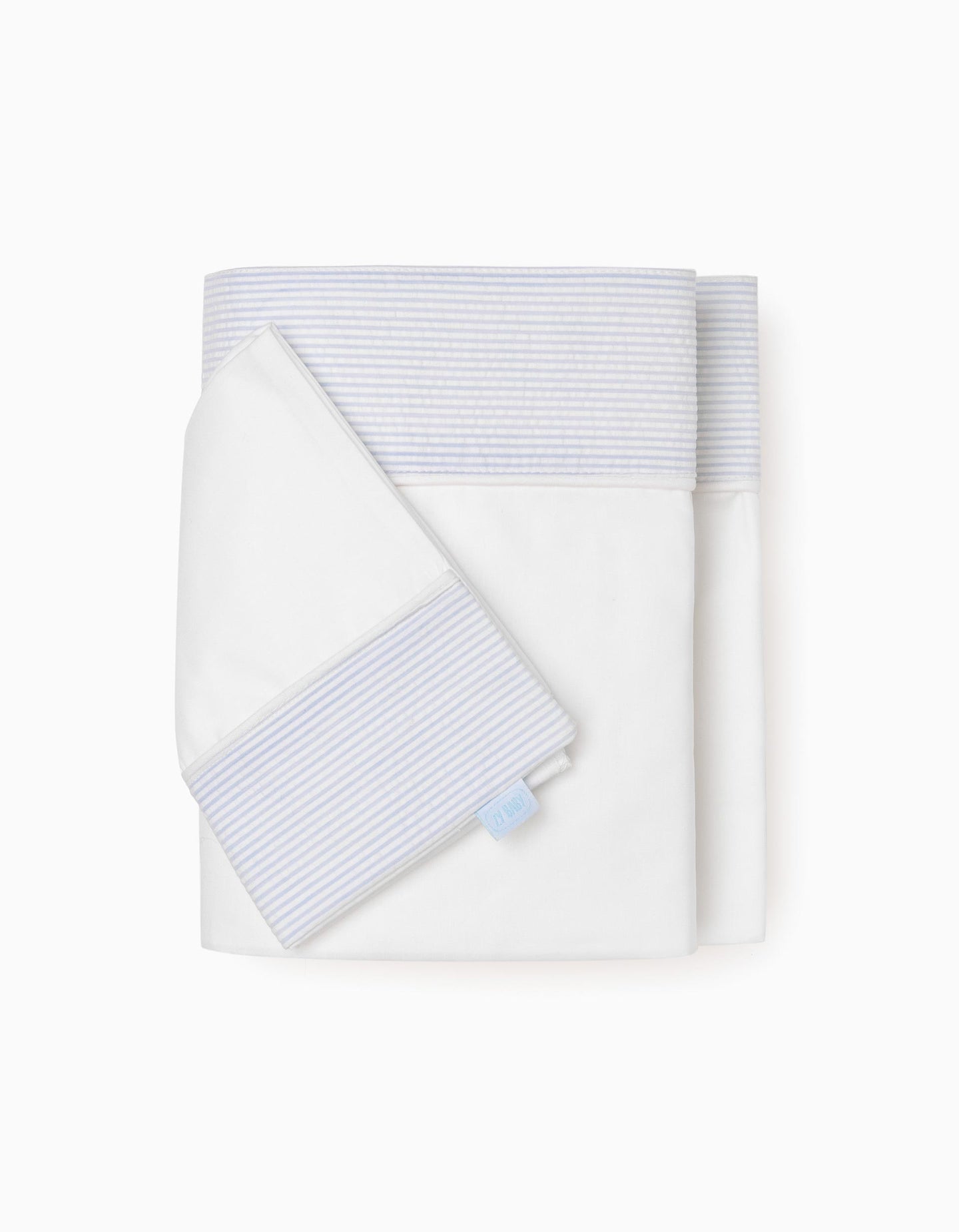 Two-piece bedding set, resulting from a simple and classic line, consisting of a sheet and a pillowcase made of 100% cotton fabric, making the bed more comfortable to provide a perfect and cosy rest for your baby. very practical and soft. Suitable for cots measuring 90x55cm. Made in Portugal.